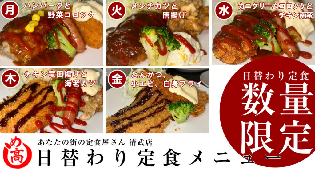 あなたの街の定食屋さん清武店では、数量限定ですが日替わり定食をご用意しております。